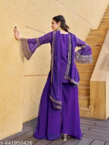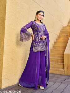 XS (Bust Size: 34 in, Top Length Size: 37 in, Bottom Waist Size: 26 in, Bottom Length Size: 36 in, Dupatta Length Size: 2.15 in, Shoulder Size: 14 in)